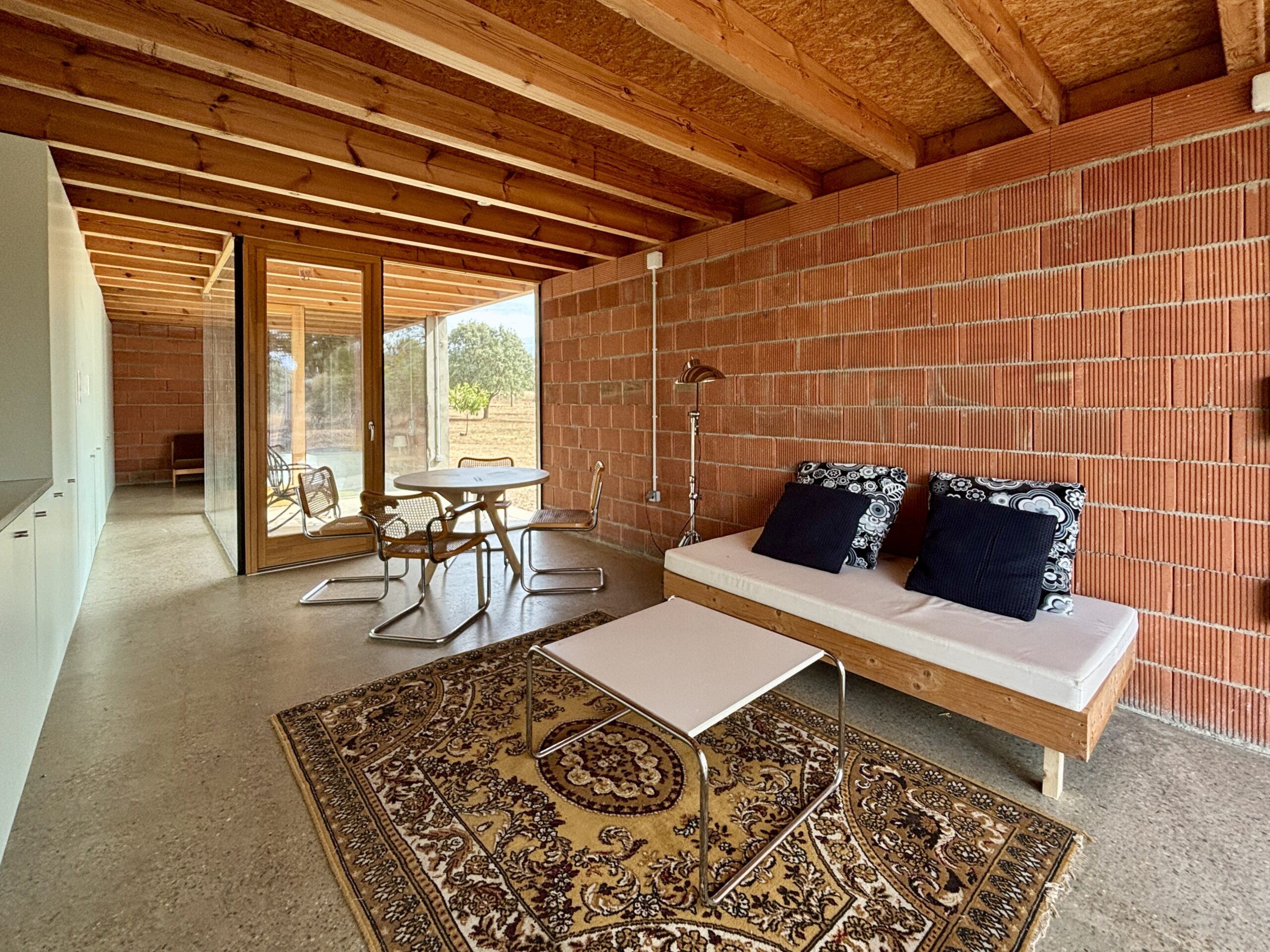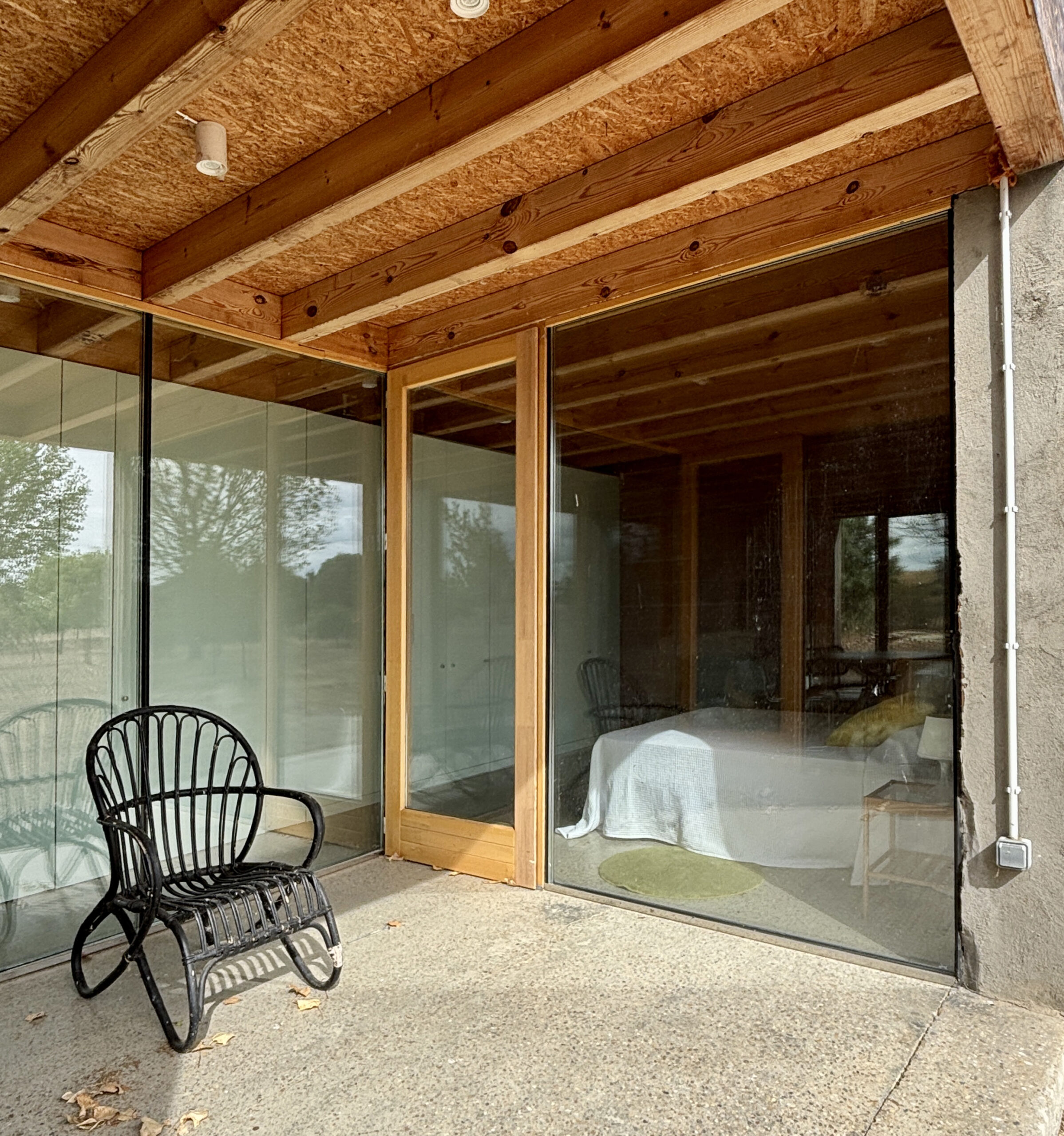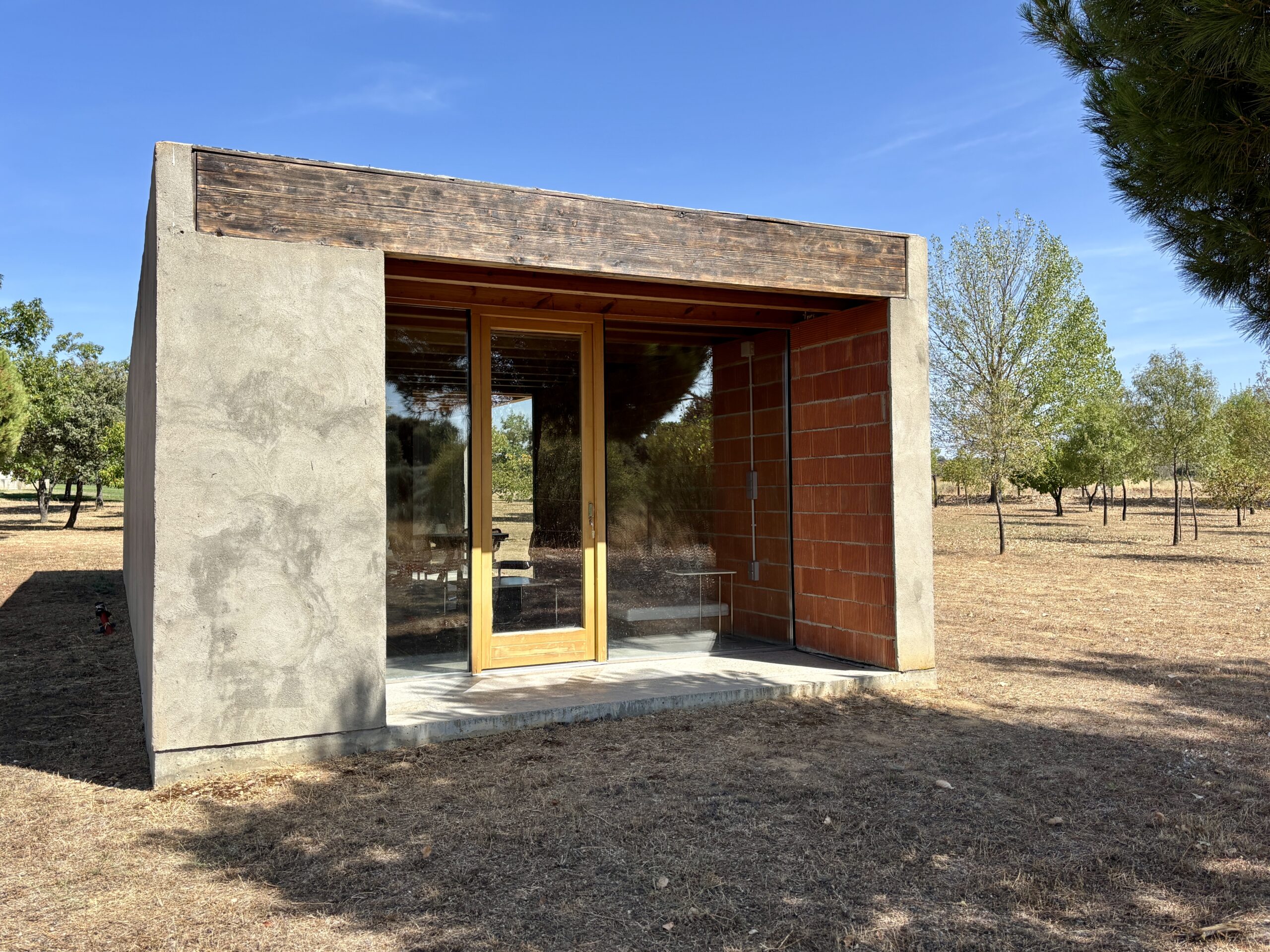 El pabellón de invitados nace como una ampliación natural de la finca: un espacio independiente, acogedor y flexible que complementa a la vivienda principal. Con un programa sencillo —dormitorio, baño, salón-comedor y cocina— ofrece privacidad sin renunciar a la conexión con el entorno.
